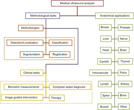 Deep Learning is a branch of machine learning which can perform mid-, and high-level image analysis, including lesion/nodule classification, organ segmentation, and object detection. DL can also be applied to biometric measurements, quality assessment, and interventional procedures (Liu et al., 2019). DL is currently being applied to breast, prostate, liver, cardiac, thyroid, fetal, lymphatic, spinal, and intravascular digital imaging review systems across the DI spectrum. It is also very applicable in 3D Volume rendering, whereby traditional 2D images are converted mentally by the operator and radiologist to obtain results, and assumes volumetric measuring of ellipsoidal masses, which causes discrepancy and error in classification, biometric volume rendering and extension of pathology. DL can be applied to these 2D images and render a more accurate 3D volume representation of sonographic findings (Liu et al., 2019).